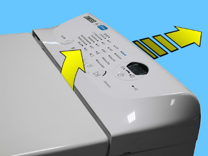 Uvedite osovine trkača (1) smještene na upravljačkoj ploči u vodilice (2) na bočnim stranama perilice rublja.