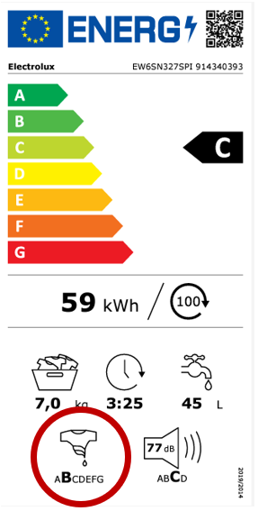 Klase centrifuge označene su slovima od A (najučinkovitije) do G (najmanje učinkovito). Perilice s klasom centrifuge A ostavljaju manje od 45% preostale vlage u rublju. To znači da je za sušenje rublja potrebno manje vremena, a ako koristite sušilicu, to je i ekonomičnije.